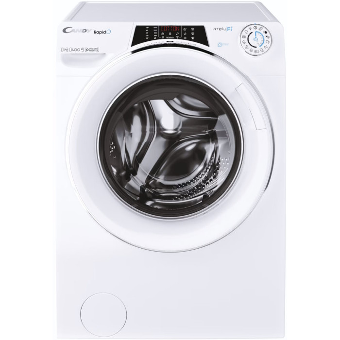 Candy RO14116DWMCE/1-S — повногабаритна пральна машина з фронтальним завантаженням до 11 кг, оснащена інверторним двигуном для тихої та енергоефективної роботи. Має 16 програм прання, включаючи 9 швидких циклів, функцію пари та технологію Snap&Wash для автоматичного вибору оптимального режиму. Підтримує керування через Wi-Fi та Bluetooth за допомогою додатку Candy simply-Fi. Клас енергоефективності A+++, максимальна швидкість віджиму — 1400 об/хв.