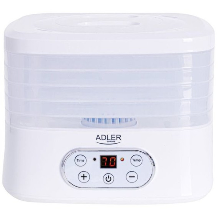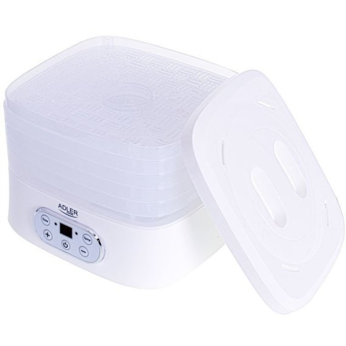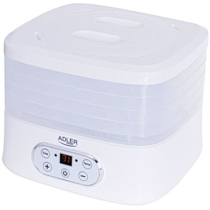 Сушарка для фруктів, овочів, грибів, зелені та м'яса це пристрій, який видаляє воду з вибраних продуктів, тим самим значно продовжуючи термін їхньої служби. Процес заснований на створенні природних умов, за яких вода випаровується, але висушені продукти не втрачають цінних поживних речовин: вітамінів та мінералів. Використовуючи панель керування з РК-дисплеєм на передній панелі машини, можна встановити діапазон температур і час роботи сушарки, які повинні бути адаптовані до продукту. Овочі, тверді та м'які фрукти, зелень чи м'ясо мають різний вміст води і тому потребують різних налаштувань. Модель компактна за конструкцією, має прямокутну форму та невеликі розміри, що полегшить її зберігання. Всередині цілих п'ять лотків, що полегшує сушіння більшої кількості продуктів за рівномірної циркуляції повітря. Лотки виготовлені з поліпропілену, висота одного 2,5 см, що дозволяє розміщувати на ній товстіші скибочки фруктів, овочів чи м'яса. Сушарка оснащена таймером, завдяки якому ви можете встановити час його роботи в діапазоні від 1 до 70 годин. Температурний діапазон становить від 35 до 70 ° С, тому там можна сушити будь-які продукти.