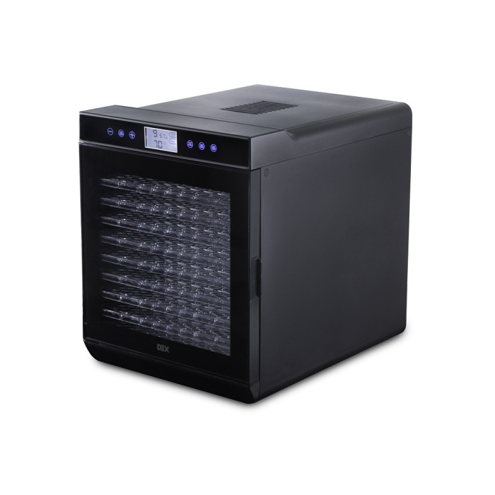 DEX DFD-510P — универсальная электрическая сушилка (дегидратор) для овощей и фруктов, ягод, грибов, мяса, рыбы, пастилы, зелени, орехов, трав и т.п., с помощью которой Вы можете создать благоприятные условия для эффективной и удобной дегидратации (подсушивание) /сушки/вяление) практически любых продуктов питания. А также использовать электросушилку для ферментации, например: приготовление кваса, домашнего йогурта и др. кисломолочных продуктов, выстаивание теста и т.д. Вы можете легко обогатить свой рацион (особенно зимой) сушеными продуктами, а именно: разновидностями сушеного и вяленого мяса, рыбы, грибов, банановыми чипсами, сушеными овощами, фруктами или ягодами, ароматной зеленью, разными травами и т.д. При условии, что продукты подверглись мягкой сушке, они, как правило, сохраняют свой первоначальный аромат, вкус и большую часть витаминов и микроэлементов. Правильно высушенные продукты легко восстановить с помощью воды/пароварки. Они, практически, могут приобрести свой первоначальный размер, форму и вид.