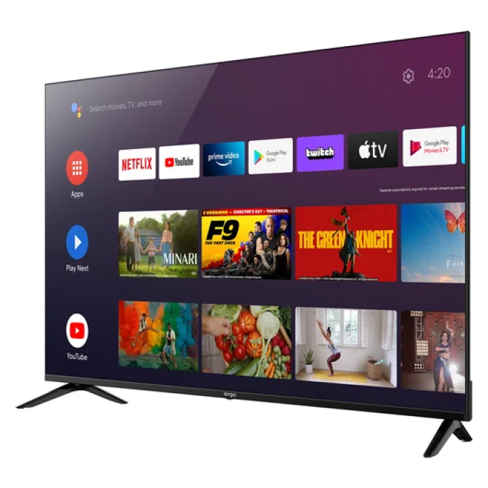 Офіційна та популярна операційна система у світі від Google вже на вашому телевізорі ERGO. Безмежні можливості перегляду світових стрімінгових сервісів, новітні прем'єри, музика, ігри та подорожі в інтернеті на кнопці вашого пульта