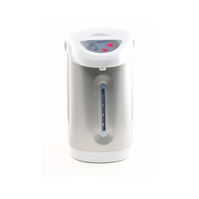 Термопот Maestro MR 084 объёмом 4.5 л, мощностью 750 Вт. Электрический чайник предназначен для нагрева воды до кипения, оснащен функцией автоматического отключения и защитой от перегрева. Модель имеет привлекательный современный дизайн, отличается простотой в работе и уходе. Скрытый (дисковый) нагревательный элемент уменьшает образование накипи и способствует долгому сроку службы.
