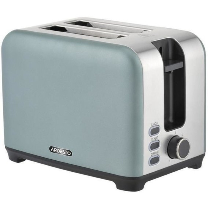 Тостер Ardesto T-F400G изготовлен из нержавеющей стали с мятными вставками. Благодаря инновациям он станет надежным помощником каждой хозяйки, желающей баловать родных вкусностями. В тостере можно обжарить сразу два хлебца с двух сторон. Степень прожарки — 7 уровней — можно выбрать с помощью ручки. Если готовые тосты остыли, можно воспользоваться функцией подогрева. При использовании замороженного хлеба пригодится функция размораживания.