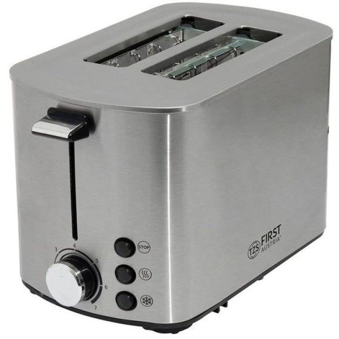 Тостер First FA-5367-3 має потужність 850 Вт, завдяки чому процес обсмажування не триватиме багато часу. Конструкція приладу передбачає два відділення, у кожне з яких ви зможете завантажувати по одній скибочці хліба, отримуючи одразу два готові тости за один цикл. Це дозволить швидко приготувати повноцінний сніданок, який на весь день зарядить вас енергією. Виготовлено прилад у міцному корпусі з нержавіючої сталі, який легко чистити.