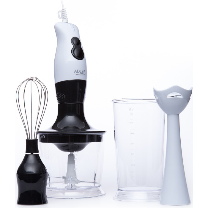 Багатофункціональність Adler AD 4605 вразить Вас: він подрібнить, дрібно поріже овочі або фрукти на салат, перетворить м'ясо на фарш, приготує домашній майонез та різні коктейлі. Просто натисніть кнопку, і за пару секунд все готово! Ще ніколи не було так легко і швидко збивати яйця в піну, готувати рідке тісто без грудочок на млинці, або робити справжні домашні соуси.