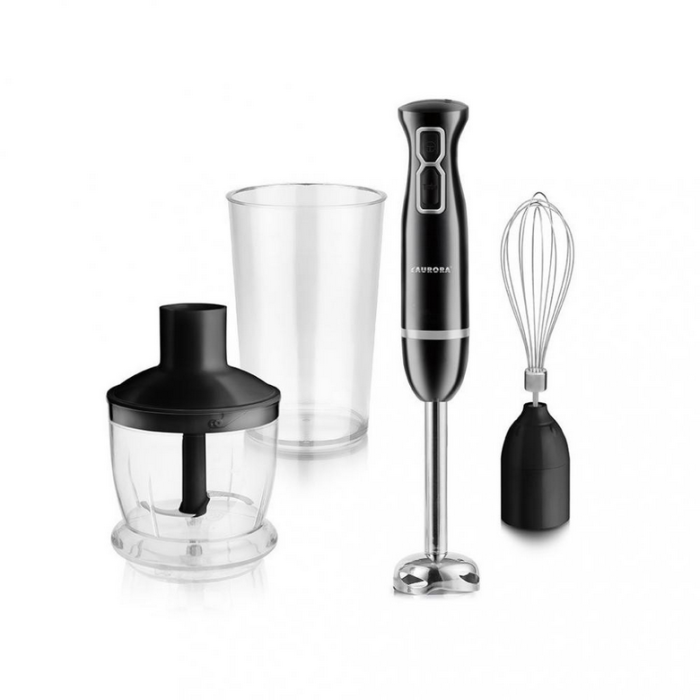 Функціональна модель блендера Aurora AU 3668 представлена у вигляді ручного занурювального пристрою в звичному всім класичному форматі. Зручна рукоятка з ергономічно розташованими перемикачами, чорно-біле поєднання, приємні фактури – все це стало перевагами однієї оболонки, яка втілила у собі найкраще зі свого класу пристроїв. При цьому модель дуже мінімалістична зовні, завдяки чому вона вписується у будь-який концепт облаштування кухонного простору. Модель оснащена двигуном потужністю 750 Вт. Дуже гідний показник потужності здатний забезпечити роботу навіть з горіхами, не кажучи вже про м'якіші види їжі. Двигун може підтримувати стабільну швидкість та турбо. Останній варіант задіює весь потенціал техніки, тому з ним можна впоратися швидше з будь-яким завданням. Дві ємності для роботи У комплекті є 2 ємності: міні-подрібнювач та склянка. Обидві вони однакові за обсягом – 600 мл. Подрібнююча посудина покривається кришкою, а мірна чаша має високі стінки. Ріжучі елементи стали відмінним вибором для тих, хто цінує в приладах надійність. Метал зберігає гостроту і не піддається корозії, тому високо цінується у виробництві.