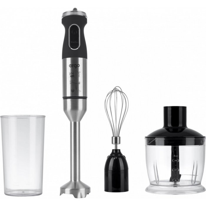 Занурювальний блендер ERGO EHB 7000 – просте та функціональне кухонне пристосування. Він робить процес приготування комфортним та приємним. Потужний блендер прискорює процес приготування і відмінно справляється зі своїми завданнями: подрібнити, перемолоти, змішати або збити продукти.