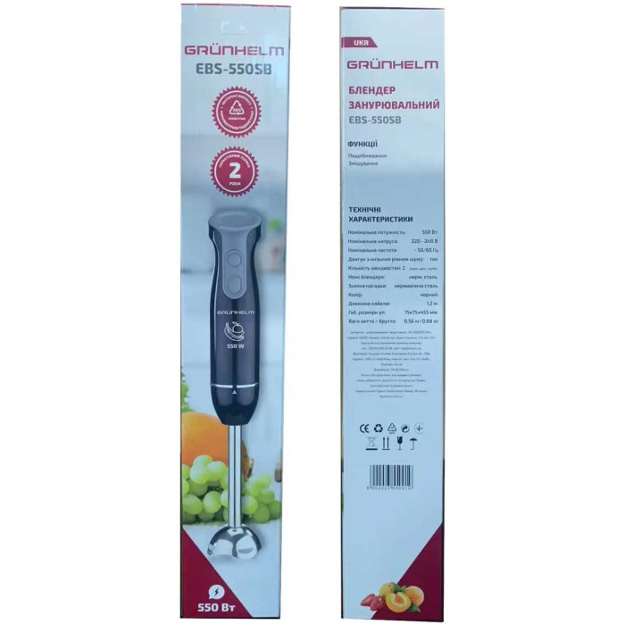 Блендер GRUNHELM EBS-550SB - це потужний та надійний кухонний прилад, який забезпечить швидке та якісне змішування та подрібнення різних інгредієнтів. Завдяки вбудованому мотору потужністю 550 ватт і 4-лопатевій ножовій системі, цей блендер легко перемелює фрукти, овочі, лід та інші продукти до консистенції, яку ви бажаєте.Блендер GRUNHELM EBS-550SB оснащений інноваційною системою управління швидкістю, яка дозволяє вам легко регулювати швидкість змішування за допомогою електронного дисплея. Крім того, він має 5 різних режимів роботи, включаючи режим "пульсації" для моментального перемалювання продуктів.Корпус блендера виконаний з надійного та міцного матеріалу, що забезпечує тривалу службу приладу. Крім того, він оснащений безпечним замком, який запобігає випадковому включенню під час роботи.Завдяки своїй функціональності, якісті та надійності, блендер GRUNHELM EBS-550SB стане невід'ємним помічником у вашій кухні і допоможе вам створити смачні та корисні страви.