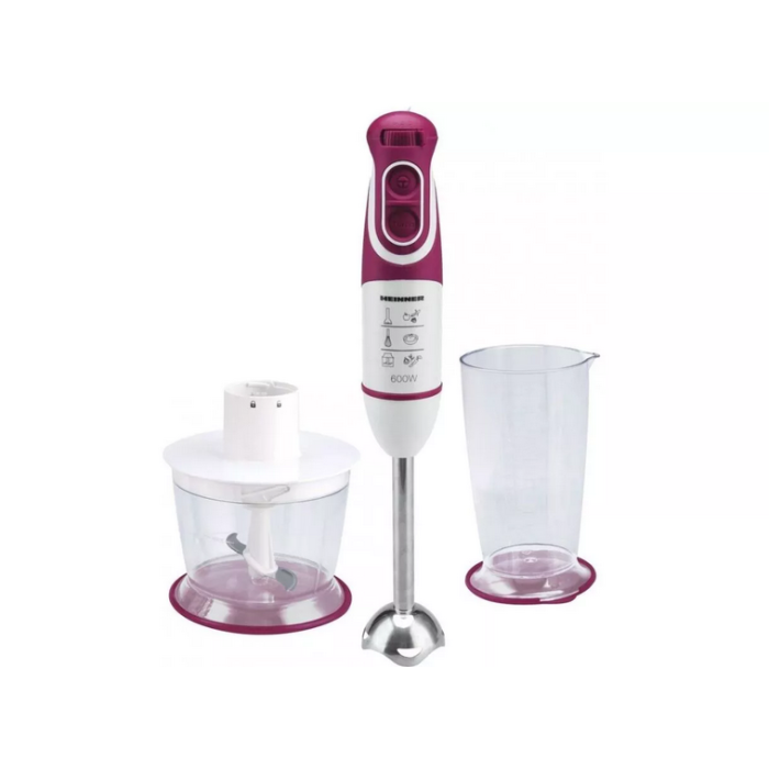 Ручний блендер Heinner Charm HB-600, 600 Вт, багатофункціональний: з подрібнювачем, віночком і чашкою для змішування, 5 швидкостей + Turbo, сталевий вал для змішування, леза з нержавіючої сталі.