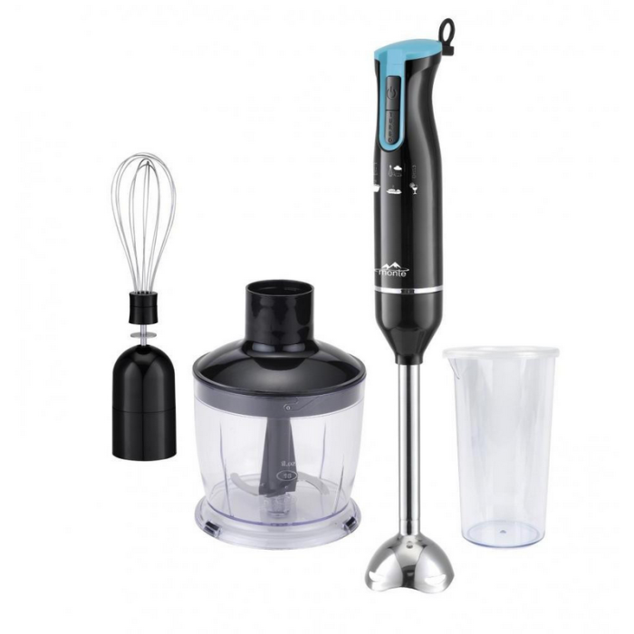 Занурювальний блендер Monte MT-1905T працює від живлення від електромережі стандарту 220В. Під час використання прилад необхідно тримати рукою, а, враховуючи, що габарити невеликі та потужність 700 Вт, всі компоненти змішуються та пюрюються за лічені хвилини, і весь процес перетворюється на захоплюючий захід.