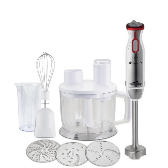 Занурювальний блендер Monte MT-1910 працює від живлення від електромережі стандарту 220В. Під час використання прилад необхідно тримати рукою, а, враховуючи, що габарити невеликі та потужність 1000 Вт, всі компоненти змішуються та пюрюються за лічені хвилини, і весь процес перетворюється на захоплюючий захід.