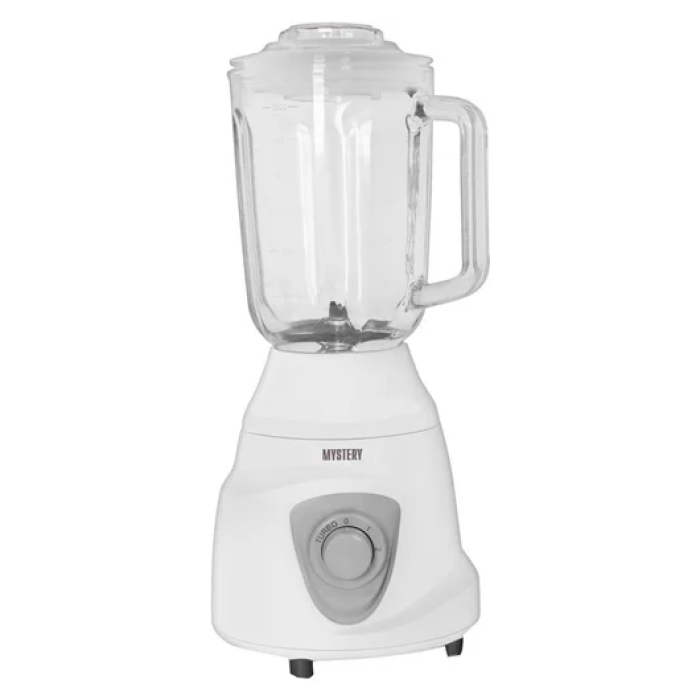 Блендер Mystery MMC-1445 має оригінальний дизайн, простий у догляді та керуванні. Модель характеризується потужністю 500 Вт, наявністю двох швидкостей роботи плюс режим турбо. Об'єм робочої ємності становить 1.5 літра. Для комфортного використання на корпусі передбачені прогумовані ніжки.