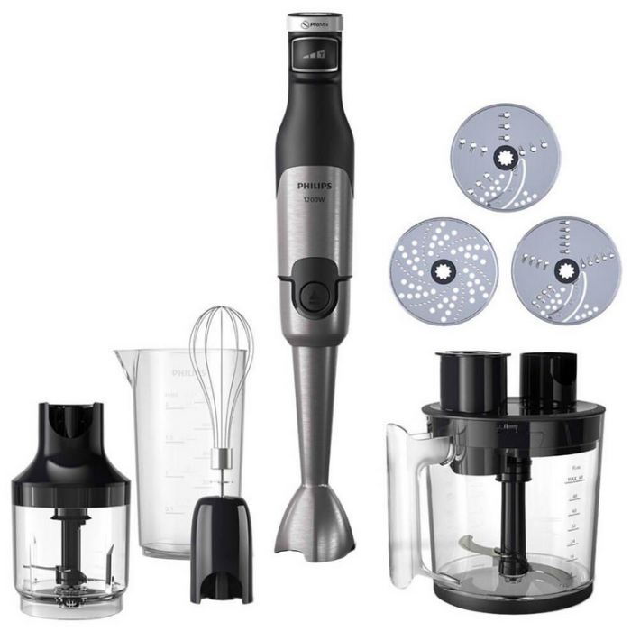 Великий аксесуар – кухонний комбайн об'ємом 1.7 літра – підійде для приготування на всю родину. Оснащений S-подібним лезом для подрібнення великої кількості їжі, а також 3 додатковими дисками, що дозволяють різати інгредієнти на скибочки різного розміру, шаткувати (з різним ступенем) та подрібнювати їх (готувати пюре та сир).