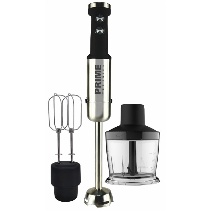 Пристрій є ергономічною ручкою, виконаною з міцного пластику, і знімні насадки 3 видів (ніжка, віночок для збивання, ніж для нарізки). Чорний колір, присутній у кожній частині приладу, надає йому додаткової привабливості та стильності, а металеві складові — сучасність та закінченість. Виріб легко впишеться в інтер'єр будь-якої кухні і додасть їй затишок і мальовничість.