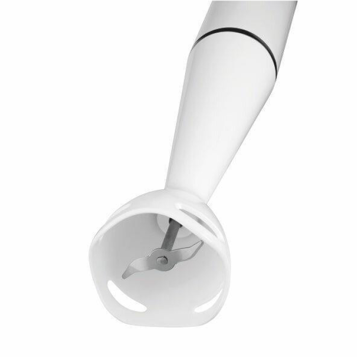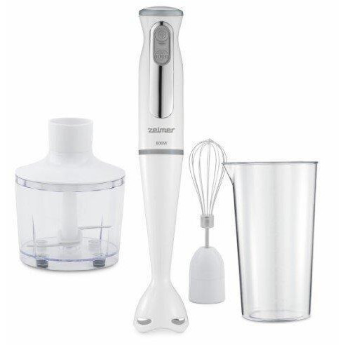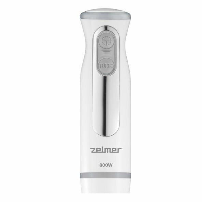 Zelmer ZHB3352 – погружний ручний блендер від компанії Zelmer. Такий простий нехитрий пристрій має доступну ціну, інтуїтивне керування та можливість ефективно працювати. Потужність пристрою становить 800 Вт, таким чином, блендер буде економним для вашої частої з ним роботи. У приладі доступна одна робоча швидкість, яка буде універсальною для різних видів змішування та збивання. Пристрій зручний для фіксації в руці, також добре миється та чиститься. Блендер оснащений міні-подрібнювачем, він підходить для подрібнення продуктів, також має невелику ємність, всередині якої розміщені ножі, щоб змішувати невелику кількість продуктів. У комплекті також йде мірна склянка, розрахована на 800 мл, ще є насадка вінчик для збивання рідких продуктів.