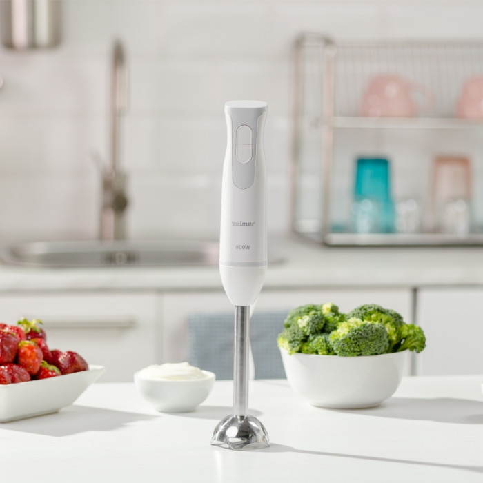 Блендери надійно зайняли свою нішу серед дрібної побутової техніки на кухні і призначені для швидкісного подрібнення / змішування різних продуктів. Блендер Zelmer ZHB4551S не є винятком і здатний обробити сировину різного складу і щільності за мінімальний проміжок часу. Пристрій виготовлено з міцного пластику і підкорює своєю лаконічністю. Ергономічна ручка світлого кольору чудово поєднується з насадкою тієї ж забарвлення, надаючи конструкції легкість і елегантність. Невеликі габарити дозволяють без проблем зберігати прилад на полиці або в ящику столу, збільшуючи тим самим його загальну привабливість.