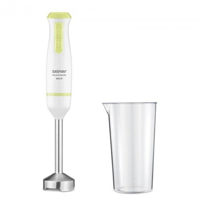 Кухонний блендер для подрібнення овочів чи фруктів, приготування крем-супів чи смузі. У комплекті зручна мірна чаша об'ємом 800 мл, яку можна використовувати для подрібнення продуктів, не побоюючись розбризкування. У блендері встановлено металеву ніжку, що робить його використання довговічним. Для максимально швидкого подрібнення продуктів передбачено турбо-режим.