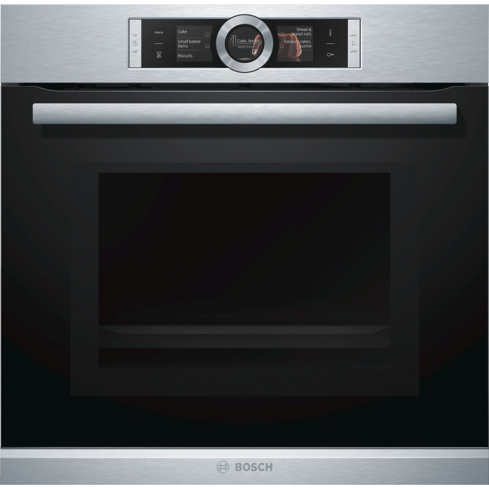 BOSCH HMG636RS1 - электрический с конвекцией, микроволны, объем 67 л, 15 режимов, очистка каталитическая, проволочные направляющие, телескопические направляющие