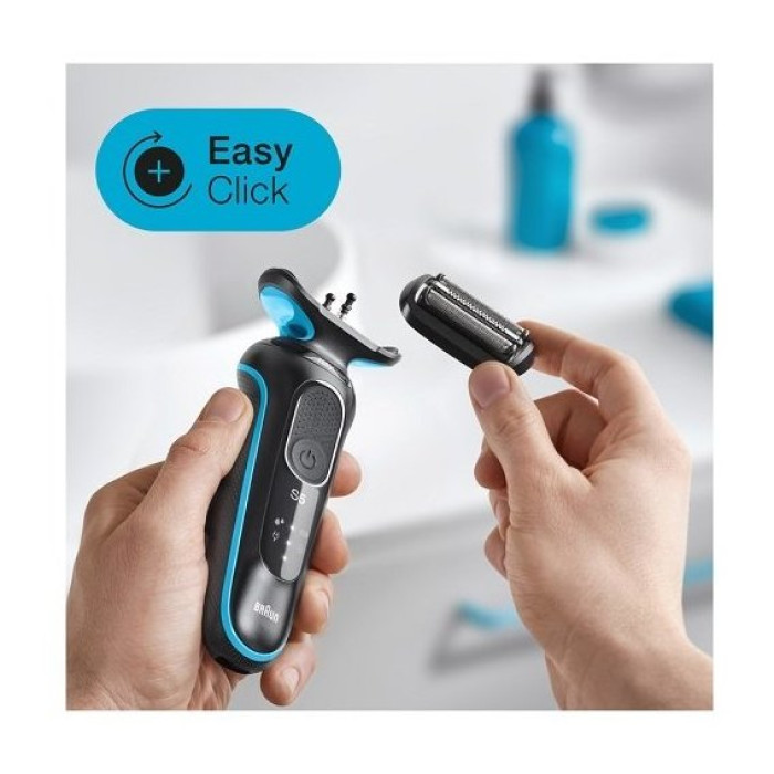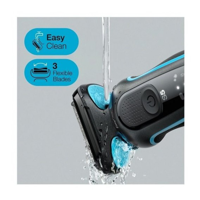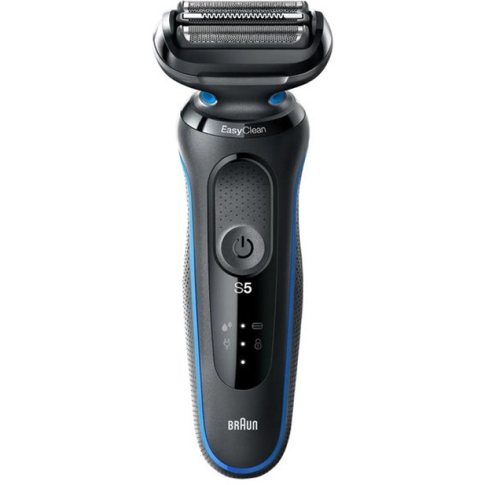 BRAUN Series 5 51-B1000s BLACK/BLUE-електробритва від відомого виробника, яка призначена для вологого та сухого гоління. Оснащена 3 плаваючими лезами, які адаптуються до контурів обличчя для легкого гоління.
