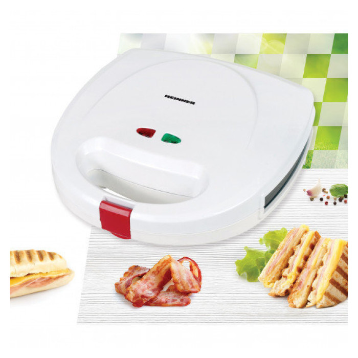 Heinner SM-2K750WH - чудовий варіант для дому, щоб швидко, легко та без особливих зусиль готувати безліч цікавих страв. Стильний прилад невеликого розміру відмінно впишеться в сучасний інтер'єр і не займе багато місця. Набір змінних насадок допоможе експериментувати із рецептами. Пристосування у вигляді пластин з ребристою поверхнею, які при нагріванні залишають на поверхні продукту характерний малюнок у вигляді просмажених, темних смуг – це чудова можливість запекти м'ясо-, рибу-або овочі-гриль, а також прогріти начинку закритих бутербродів, лавашів або паніні. Ручки із спеціального матеріалу завжди залишаються холодними, що виключає ризик отримати опік у процесі роботи, а міцний затискач-фіксатор попереджає їхнє розкриття. Невеликі габарити пристрою роблять зберігання девайса максимально зручним на кухні будь-яких розмірів. Можливість вертикального зберігання дозволять заощадити максимум простору.