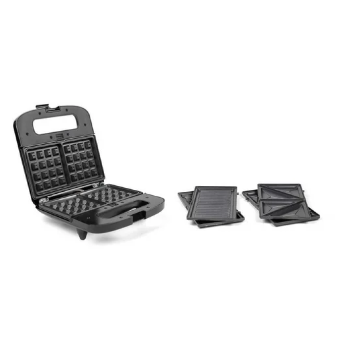 Мультимейкер укомплектований трьома типами панелей, що знімаються: для грилю або паніні, сендвічів і випічки віденських вафель. Для приготування певної страви достатньо вибрати потрібний тип прес-форми. Набір змінних панелей допомагає експериментувати з різними рецептами, готувати не лише гарячі чи холодні закуски та десерти, а й повноцінні обіди та сніданки. Антипригарне покриття