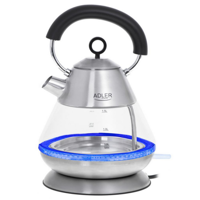 Adler AD 1282 є поєднанням ретро-дизайну і сучасних матеріалів, таких як скло і сталь, який впишеться в будь-який тип кухні. Великий електричний чайник об'ємом 1,5 літра, що дозволяє ефективно кип'ятити воду для чаю на 6-7 осіб завдяки потужності 2200 Вт. Оснащений індикатором рівня чистої води та системою контролю безпеки STRIX. Система безпеки також не дасть вам увімкнути порожній чайник, тим самим заощадивши електроенергію та забезпечивши вашу безпеку. Основа пристрою повертається на 360° з нержавіючої сталі. Чайник також відрізняється оригінальним дизайном, який порадує кожного.