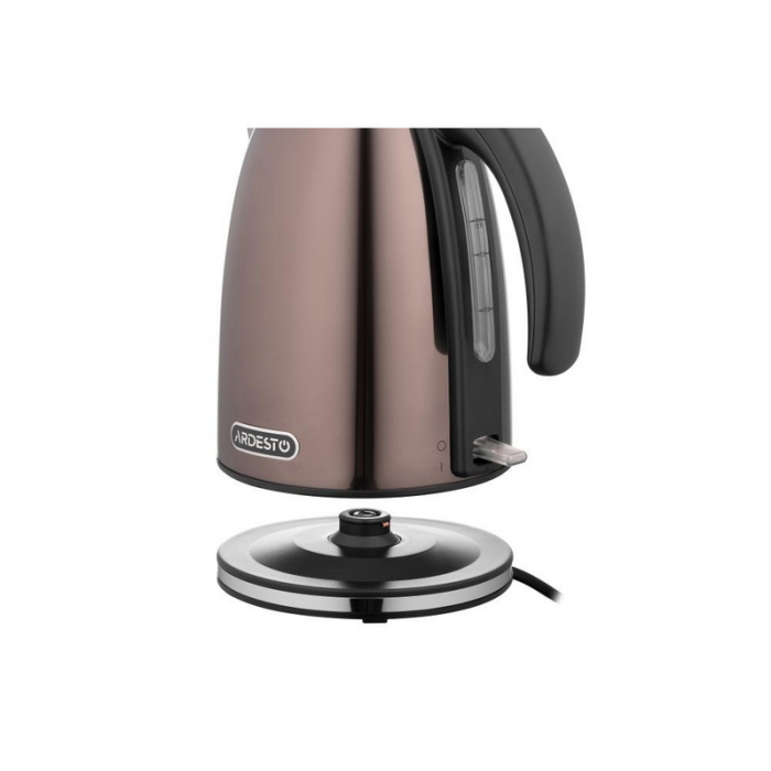 Чайник Ardesto EKL-F340 відрізняється простим елегантним дизайном. Він кип'ятить до 1,7 літра води, завдяки індикатору кількості ви можете набрати рівно стільки води, скільки вам потрібно. Носик має таку форму, щоб заливка була точною і без непотрібного розбризкування води. Ви можете поставити чайник на підставку з поворотом на 360° з будь-якої зручної для вас сторони. Завдяки прихованому нагрівальному елементу чайник можна легко та безпечно чистити. Він має потрійну систему захисту. Захищає від перегріву, сухого кип'ятіння та автоматично відключається при знятті з основи.