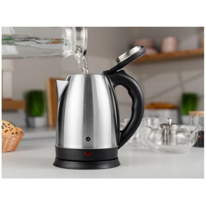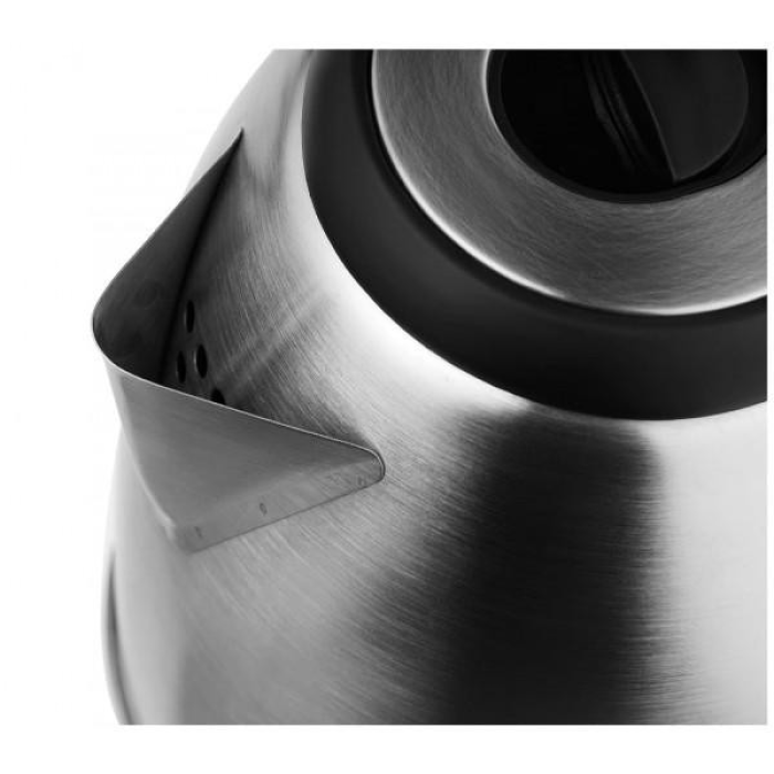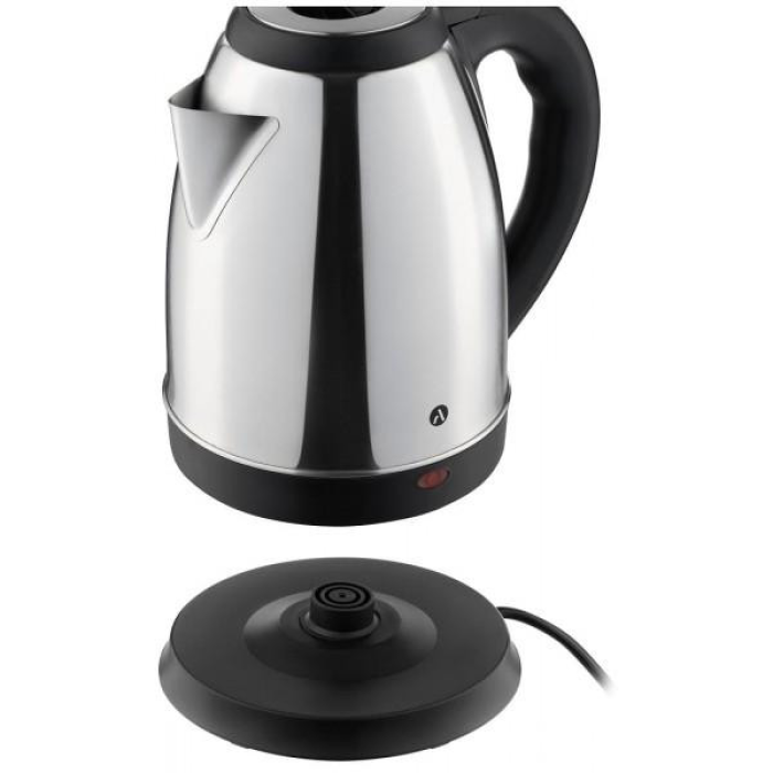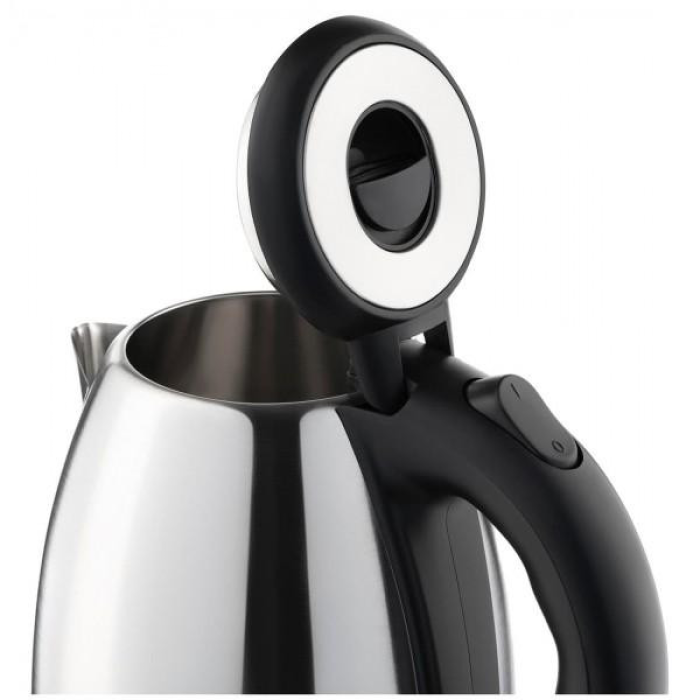 Металевий електрочайник об'ємом 1,8 літра і підставкою, завдяки якій чайник може повертатися на 360 °. Ергономічна ручка зручної форми має теплоізоляцію, дозволяючи взятися за неї, коли це буде необхідно. Кришка з традиційним механізмом відкривання дає повний доступ до вмісту, дозволяючи вилити або залити воду всередину з максимальним комфортом. Візуальний контроль за тим, як відбувається кип'ятіння, здійснюється за допомогою индикаційної лампи на нижній частині конструкції. Вона спалахує червоним, коли йде активна робота з продукуванням тепла. Коли ж вода вже досягла точки кипіння, лампа гасне. Опція автоматичного відключення дозволяє захистити цю техніку від найнеприємніших ефектів, якими може загрожувати перегрів. Щоб уникнути його виробник вмонтував механізм відключення при досягненні точки кипіння, а також при спробах включити пристрій без води.