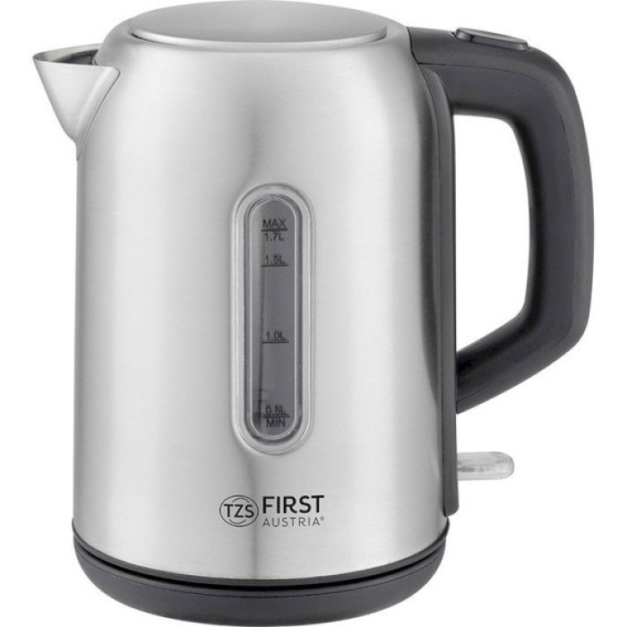 Електрочайник First FA-5409-5 - це надійна і зручна у використанні модель, яка відрізняється красивим виконанням і швидкою роботою. Параметри потужності і обсягу в ньому підібрані найоптимальнішим чином, тому окріп буде готовий за лічені хвилини. Корпус даної моделі виготовлений з якісної нержавіючої сталі, яка характеризується високими зносостійкими характеристиками. Кількість води в чайнику ви зможете визначити за допомогою, розташованого на корпусі індикатора рівня води. Закритий нагрівальний елемент виконує швидке нагрівання води, більш довговічний, так як захищений від утворення накипу. При закипанні води чайник автоматично відключається. Кришка чайника зручно відкривається за допомогою спеціальної кнопки, розташованої на масивній ручці.