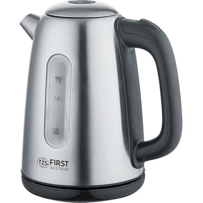 Електрочайник First FA-5409-6 - це надійна і зручна у використанні модель, яка відрізняється красивим виконанням і швидкою роботою. Параметри потужності і обсягу в ньому підібрані найоптимальнішим чином, тому окріп буде готовий за лічені хвилини. Корпус даної моделі виготовлений з якісної нержавіючої сталі, яка характеризується високими зносостійкими характеристиками. Кількість води в чайнику ви зможете визначити за допомогою, розташованого на корпусі індикатора рівня води. Закритий нагрівальний елемент виконує швидке нагрівання води, більш довговічний, так як захищений від утворення накипу. При закипанні води чайник автоматично відключається.
