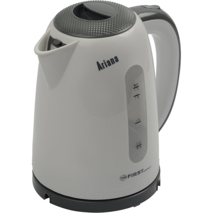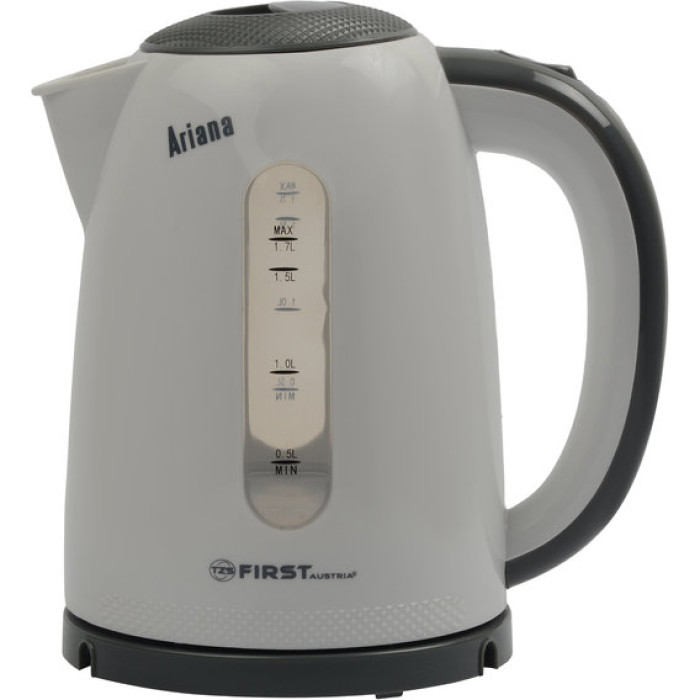 Корпус електрочайника First FA 5427-2 виготовлений з термостійкого пластику та представлений у двох кольорових варіантах: білий/блакитний, білий/жовтий. Шкала індикатора рівня води оточена чудовим візерунком. Моделі характерний стильний та сучасний дизайн, який добре вписується в інтер'єр кухні. Ергономічна ручка електрочайника зручно лежить у руці і не ковзає під час його переміщення. На ній розташована кнопка вмикання/вимикання приладу та світловий індикатор роботи.