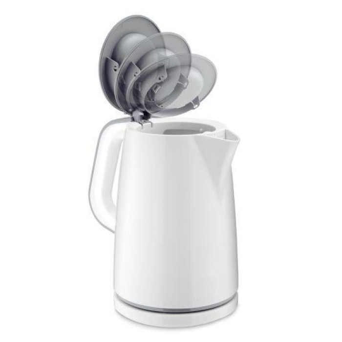 Електричний чайник із пластиковим корпусом та зручним індикатором рівня води в резервуарі. Системи захисту – автоматичне відключення після закипання або при включенні без води запобігають поломкам. Зручне підсвічування копії включення дозволить увімкнути/вимкнути чайник навіть у темряві. У підставці передбачено місце зберігання шнура живлення.