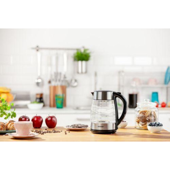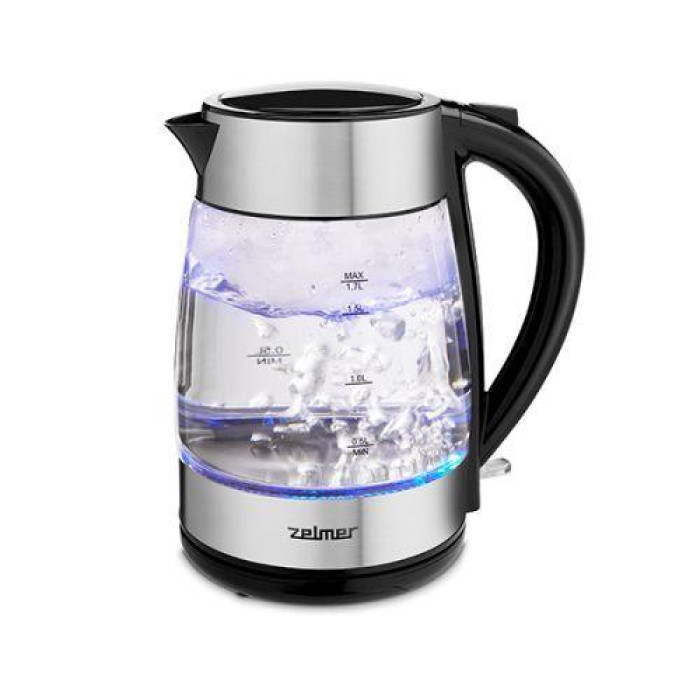 Електрочайник Зелмер ZCK8011 – модель оснащена світлодіодною підсвіткою скляного корпусу та декількома системами захисту.