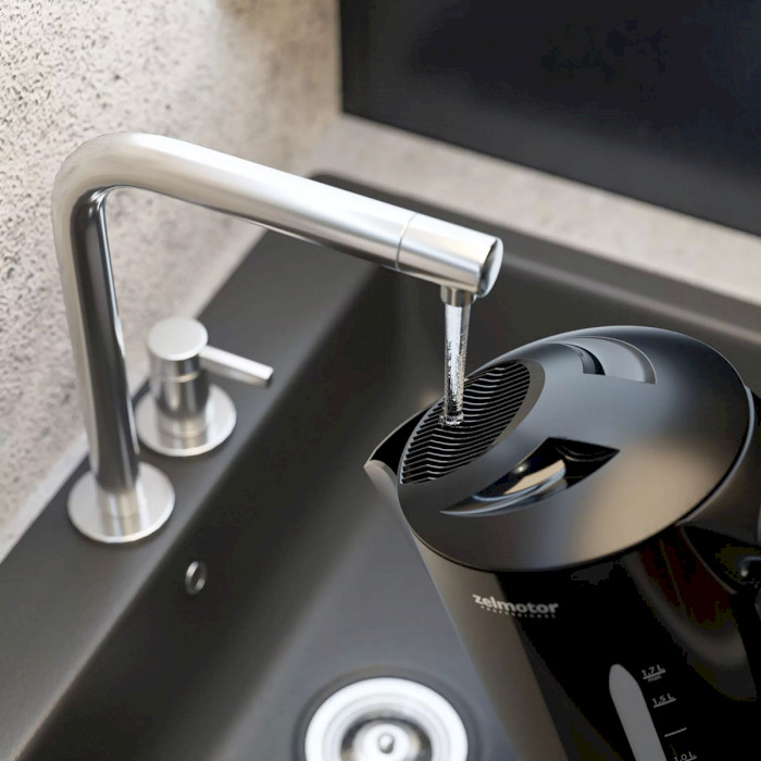 Електрочайник об'ємом 1.7 л, потужність 2200 Вт, прихований нагрівальний елемент, корпус, пластик/нержавіюча сталь, ергономічна ручка, шкала рівня води, колір чорний
