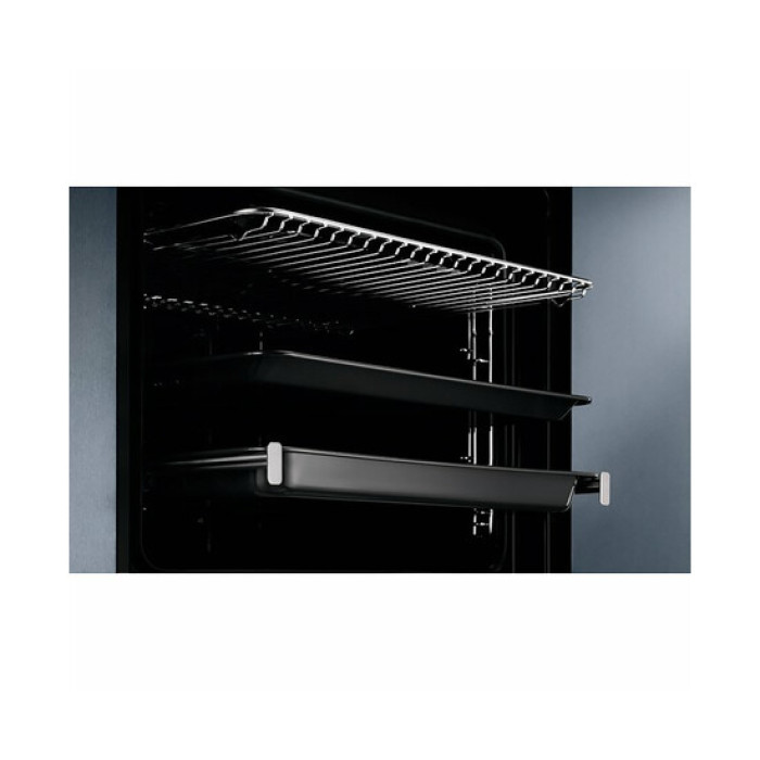 Быстрый разогрев. Автоматические рекомендации по температуре. Индикатор оставшегося тепла. Галогенное освещение духовки. Диапазон температур: 30 ° C-300 ° C.