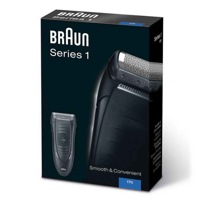 Ціна Braun Series 1 170 цілком прийнятна, адже дана модель працює тільки від мережі. Електробритва Braun Series 1 170 ідеально підходить для сухого гоління без подразнень шкіри. Це надійний прилад, який кожен день буде допомагати приводити свій зовнішній вигляд до ладу. Завдяки бриючій сітці Smart Foil пристрій забезпечує гладке гоління. Ця сітка і вбудований тример дозволяють голити набагато чистіше й ефективніше. Бритва Braun 170 Series 1 чітко повторює контури вашого обличчя через спеціальні плаваючі бриючі сітки. Завдяки цій особливості бритва зрізає не тільки довгі, але й короткі волоски. З проблемними ділянками, де складно гладко виголити шкіру, наприклад над верхньою губою, спеціальна вузька бриюча голівка легко впорається. Пристрій відноситься до типу «миючі», бритву можна легко почистити під струменем води. Це забезпечує гігієнічність і свіжість кожного наступного гоління. Чорний колір надає особливий стиль даної моделі, а ергономічний дизайн забезпечує вам максимум комфорту під час використання приладу. Сітка для гоління Smart Foil™ під час роботи захоплює волоски, які ростуть в різних напрямках і особливо неслухняні.