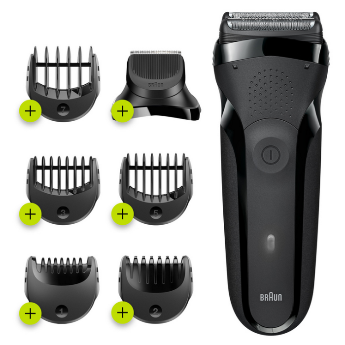 На думку багатьох власників, завдяки співвідношенню ціни бритви Braun Series 3 300BT Black до її можливостей, а також безумовної надійності вона є однією з найпопулярніших як у своєму класі, так і взагалі серед усіх бритв бренду. Як би там не було, дана модель дійсно має чудові технічні характеристики і власний пізнаваний стиль. Використовувати її для повсякденного гоління не тільки зручно, але й престижно. Вивірений до дрібниць ергономічний дизайн корпусу, це гарантія того, що прилад добре лежить в руці, забезпечуючи повну свободу рухів. Добре голити сьогодні вже недостатньо. Кращі бритви повинні бути, за можливістю, універсальними і Braun Series 3 300BT Black з таким завданням справляється чудово! Потрійна система сіткового гоління з плаваючими (тобто рухомими) елементами з легкістю збриває навіть дуже пишну щетину начисто. Якщо ж ви вирішите злегка підправити лінію волосся у скронь або, наприклад, підрівняти бороду, скористайтеся змінними гребнями. Їх в базовій комплектації поставляється 5 різної довжини (від 1 до 7 мм.). Плюс знімна насадка-тример. Чохол, а також повний набір для стайлінгу з гребнями і змінний ріжучий блок завжди можна замовити окремо в розділі аксесуарів. Дана модель оснащена подвійною системою електроживлення. Вона може працювати як від мережі, так і від вбудованого акумулятора. Причому час максимальної роботи від акумулятора (30 хв.) цілком дозволяє ретельно і не поспішаючи виголитися. Тим більше, що повна зарядка потребує всього 60 хв. Але навіть якщо такої швидкості недостатньо, в «екстреній» ситуації можна задіяти «швидку» схему і всього за 5 хвилин зарядити акумулятор на один сеанс.