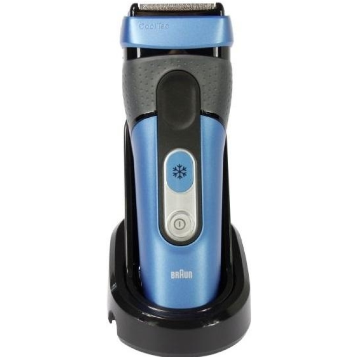 Чоловіча електробритва Braun CoolTec CT4s - досить компактна і ергономічна модель, здатна позбавити Вас від неприємних відчуттів під час процесу гоління і подальшого подразнення шкіри. Однією з відмінних особливостей даної бритви є використання унікальної технології охолодження CoolTec, робота якої грунтується на трьох основних елементах, що включають тепловідвід, охолоджуючу пластину і тепловий насос Thermo-Electric-Cooler. За допомогою інтегрованої між сітками бриючих головок керамічної пластини забезпечується максимальне охолодження поверхні Вашої шкіри, що запобігає виникнення неприємних відчуттів. Завдяки тому, що Braun CoolTec CT4s обладнана спеціальною системою лез SensoBlade і ріжучим блоком Foil & Cutter, здатним рухатися в різних напрямках, ефективно захоплюючи і направляючи волоски в потрібному напрямку, досягається ідеальний результат гоління.