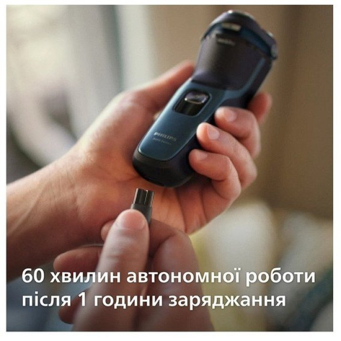 Підрівнюйте вуса та бакенбарди завдяки вбудованому тримеру.