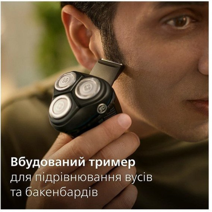 Підрівнюйте вуса та бакенбарди завдяки вбудованому тримеру.