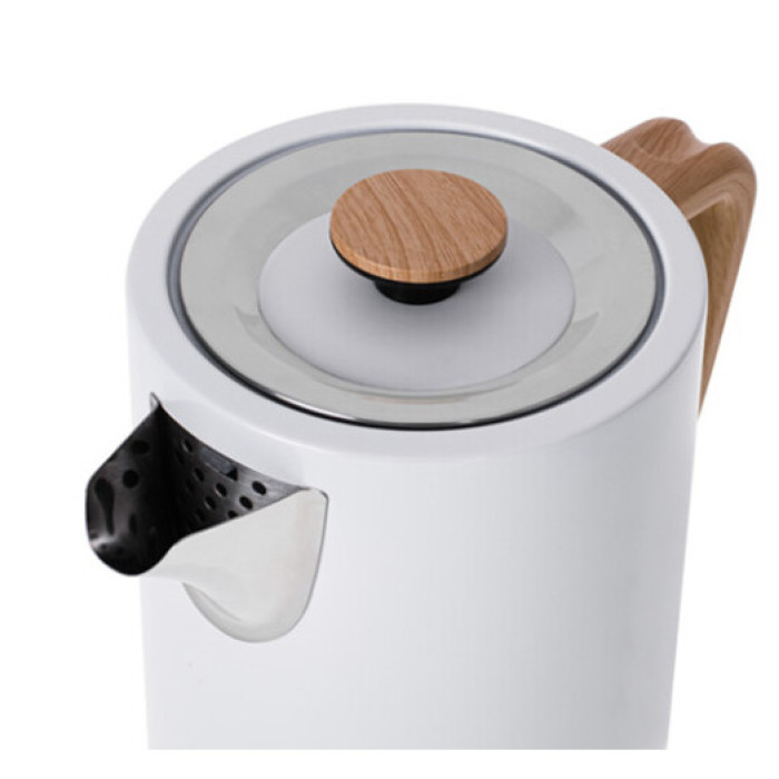 Сучасний електричний чайник об'ємом 1,7 літра, який стане в нагоді на кожній кухні.Його безпека забезпечує блокування, що запобігає включенню порожнього чайника, та автоматичне відключення після закипання води, а також система контролю безпеки STRIX.Функціональність збільшується за рахунок стійкої основи та індикатора рівня чистої води.Він має максимальну потужність 2200 Вт і виготовлений із нержавіючої сталі, що робить його ідеальним рішенням для швидкого кип'ятіння води.Прилад має захист від закипання без води.