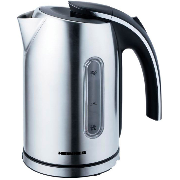 Електрочайник Heinner PF-70, 2200 Вт, 1,7 л, фільтр, що знімається і миється, прихований під/п нагрівальний елемент, вимикач, нержавіюча сталь.