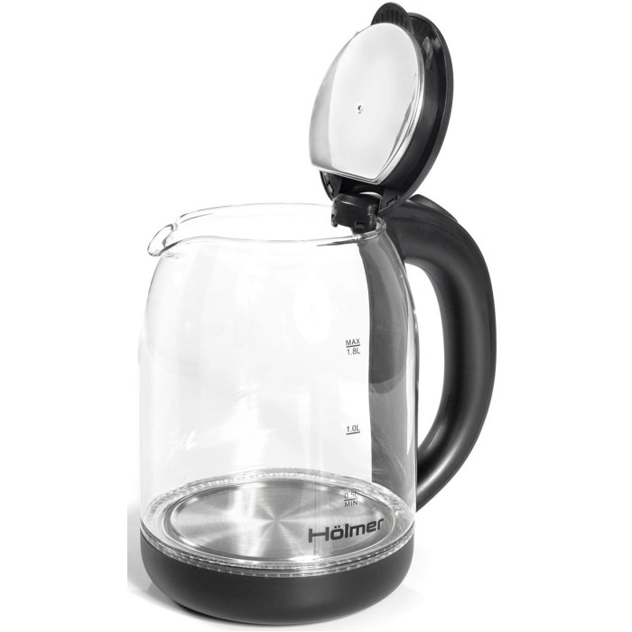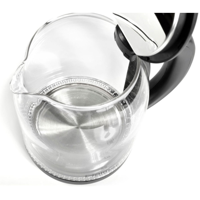 Електрочайник потужністю 1500 Вт має об'єм 1,8 л та прихований нагрівальний елемент. Довжина шнура становить 0,6м.