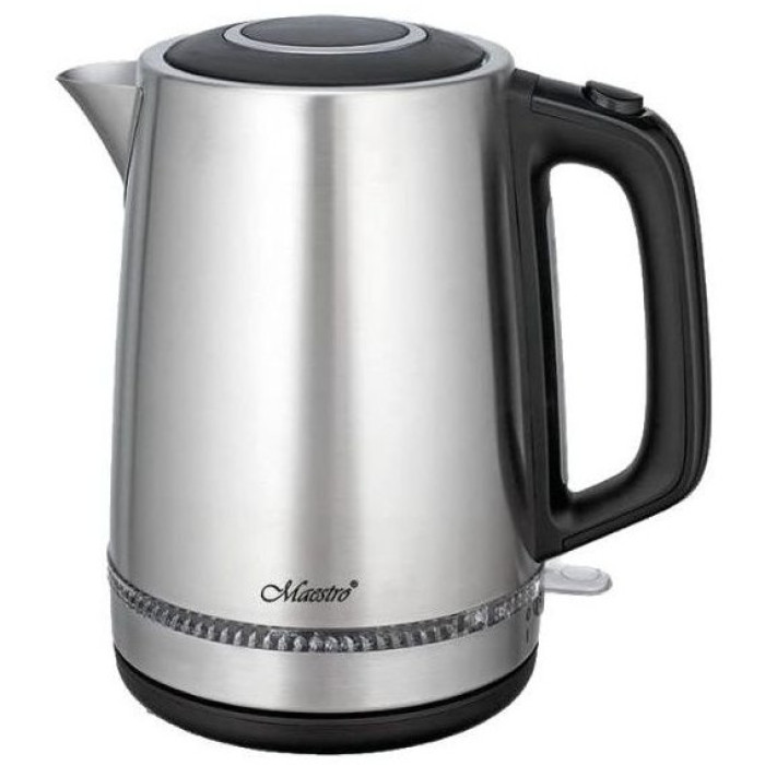 З Maestro MR-047 приготування улюбленого напою буде забирати мінімум часу та сил. Прихований нагрівальний елемент потужністю 2200 Вт здатний вмить закип'ятити необхідну кількість води, а елементарне керування не викликає дискомфорту. Чайник відрізняється простою конструкцією та економічним енергоспоживанням, тому позитивні емоції від експлуатації вам забезпечені. Завдяки лаконічному дизайну, модель легко стане частинкою будь-якого інтер'єру. Міцний корпус із нержавіючої сталі відмінно справляється з перепадами температури, а також не боїться механічних пошкоджень та корозії. Модель вміщує в собі 1,7 літра води, чого цілком достатньо, щоб пригостити чаєм усіх гостей лише за один робочий цикл. Спеціальний індикатор на корпусі моделі покаже точну кількість рідини у резервуарі, а можливість обертання на 360 градусів дозволить легко знімати та встановлювати чайник на підставку.