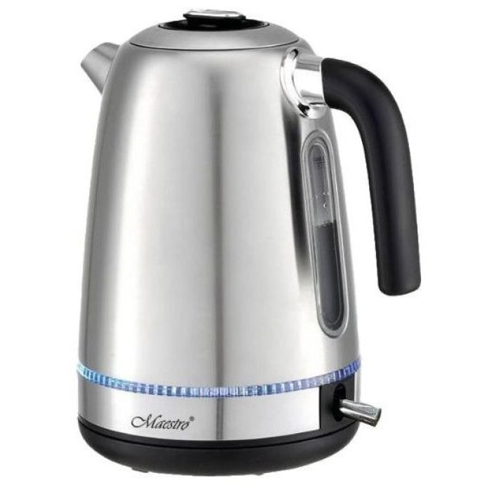 З Maestro MR-050 приготування улюбленого напою буде забирати мінімум часу та сил. Прихований нагрівальний елемент потужністю 2200 Вт здатний вмить закип'ятити необхідну кількість води, а елементарне керування не викликає дискомфорту. Чайник відрізняється простою конструкцією та економічним енергоспоживанням, тому позитивні емоції від експлуатації вам забезпечені. Завдяки лаконічному дизайну, модель легко стане частинкою будь-якого інтер'єру. Міцний корпус із нержавіючої сталі відмінно справляється з перепадами температури, а також не боїться механічних пошкоджень та корозії. Модель вміщує в собі 1,7 літра води, чого цілком достатньо, щоб пригостити чаєм усіх гостей лише за один робочий цикл. Спеціальний індикатор на корпусі моделі покаже точну кількість рідини у резервуарі, а можливість обертання на 360 градусів дозволить легко знімати та встановлювати чайник на підставку.