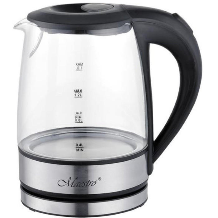 Електрочайник Maestro MR062 – це не тільки зручна та практична модель, вона має привабливий дизайн у вигляді прозорого корпусу, виконаного з термостійкого скла з приємним підсвічуванням води під час його роботи. Завдяки потужності в 1630 Вт та прихованому нагрівальному дисковому елементу з покриттям із нержавіючої сталі, Maestro MR062 здатний за короткий проміжок часу закип'ятити повний об'єм 1,2 л води. Такий чайник приємно порадує простотою в експлуатації та комфортом у роботі, у чому добре допомагають такі деталі, як індикатор рівня води та індикатор включення, функція автоматичного відключення під час закипання та захист від перегріву. Не менш зручна можливість Maestro MR062 обертання на підставці навколо осі на 360 градусів, що дозволяє встановити чайник в будь-якому зручному для Вас місці.