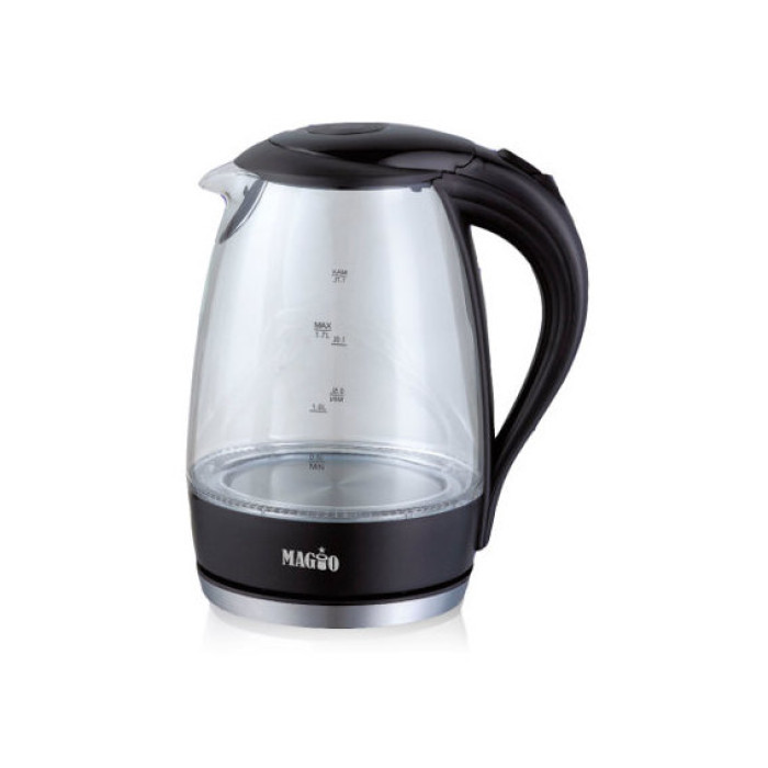 Чайник MG-501 об'ємом 1,7 л поєднує стильний дизайн з чудовою якістю і довговічністю.Корпус виготовлений з прозорого термостійкого скла, завдяки чому у воді просто ні звідки з'явитися неприємним присмакам або навіть небезпечним для здоров'я речовинам.Внутрішній світловий індикатор роботи ефектно осяює киплячу воду блакитним світлом.При натисканні кнопки механізм відкриття кришки спрацьовує м'яко і плавно, виключаючи розбризкування конденсату з кришки.Прихований нагрівальний елемент забезпечує швидке кип'ятіння, надійність та простоту очищення чайника, а вбудований контролер захищає від перегріву.Комплексна система безпеки для запобігання короткому замиканню та википанню води.Захист від перегріву забезпечить автоматичне вимкнення при недостатньому рівні води.