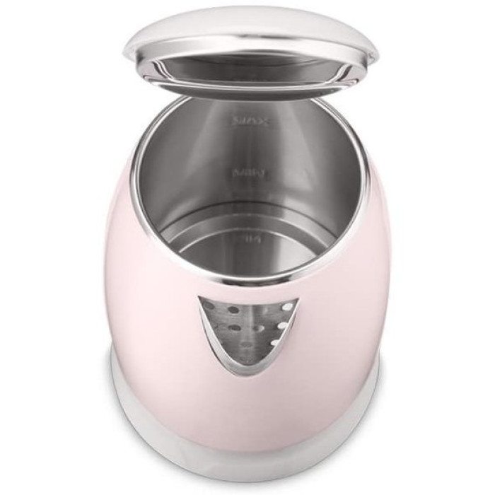 Чайник-термос MG-981 об'ємом 1,5 л поєднує стильний дизайн з чудовою якістю і довговічністю. Чайник-термос завдяки подвійним стінкам нагрівається набагато швидше, заощаджуючи електроенергію та час, а ефект термоса збереже гарячу воду тривалий час. Зовнішній корпус виготовлений з високоякісного поліпропілену. За рахунок цього, при роботі чайник не нагрівається зовні, його температура не перевищує 70 °, що унеможливлює опіку. Внутрішня колба, кришка та носик виготовлені з високоякісної нержавіючої сталі, сумісної з харчовими продуктами, що забезпечує чистоту води та розраховані на тривалий термін служби. При натисканні кнопки механізм відкриття кришки спрацьовує м'яко і плавно, виключаючи розбризкування конденсату з кришки. Прихований нагрівальний елемент забезпечує швидке кип'ятіння, надійність та простоту очищення чайника, а вбудований контролер захищає від перегріву. Комплексна система безпеки для запобігання короткому замиканню та википанню води. Функція автовимкнення активується, коли процес завершується або пристрій знімається з основи. Шнур обертається навколо основи, що дозволяє легко розмістити чайник на кухні. Бездротова підставка з поворотом 360 ° для зручності використання.