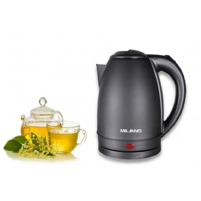 Milano KT-2001B - електричний чайник в універсальному дизайні, який чудово виглядає у кожному кухонному інтер'єрі. Сталевий корпус надійно захищає усі деталі чайника від пошкоджень. Він не потребує особливого догляду та має відмінні експлуатаційні якості. Потужність 1500 Вт, якої цілком достатньо для ефективного нагрівання води, при цьому апарат відрізняється високою економічністю. Він вміщує в собі 1,8 води, завдяки чому чудово підходить як маленькій, так і великій родині. Оснащений функцією автоматичного відключення під час закипання води, що не може не тішити, а функція автовідключення за відсутності води вбереже його від поломок і значно збільшить експлуатаційний термін.