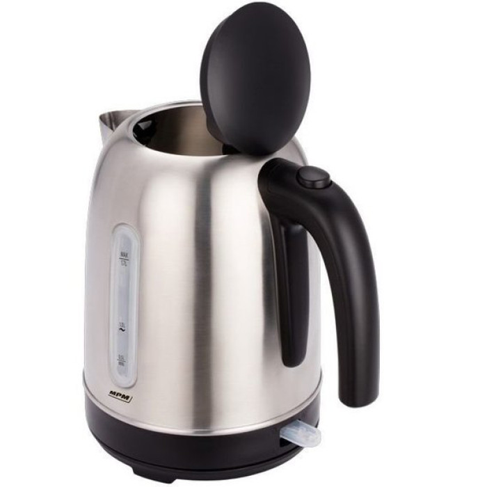 Сталевий електричний чайник MPM Product MCZ-102M доповнить інтер'єр сучасної кухні. Він надійний і зручний в експлуатації, відмінно справляється зі своїми обов'язками. За кілька хвилин він забезпечить 1,7 л крутого окропу, завдяки високій споживаній потужності 2200 Вт. Для контролю за рівнем води в чайнику передбачено спеціальний індикатор рівня води. Про ввімкнення пристрою можна зрозуміти за зручним індикатором, що світиться, в ролі якого виступає кнопка ввімкнення пристрою. Кришка для набору води відкривається автоматично, натисканням однієї кнопки.