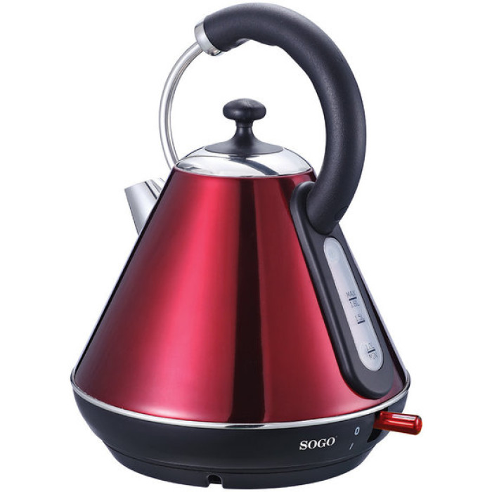 Електрочайник SOGO KET-SS-5785 зроблений у стильному форм-факторі, що чудово копіює звичайні моделі пристроїв, які не мають підключення до мережі. Використовуючи зовнішній вигляд подібних чайників, можна досягти чудово акцентованої обстановки у стінах кухні, т.к. він стане досить яскравою деталлю, яка привертає увагу. Розміщення електричного чайника з урахуванням необхідне контакту основних робочих елементів з електрикою, що призводить всю систему працювати. Крім цього, поворотну основу використовують також як підставку і для зберігання кабелю (для цих цілей всередині є спеціальний відсік). Налив води відбувається через зручний носик продуманої форми. Усередині нього розташовується прокладка, що фільтрує, яку можна витягти для очищення. Фільтр перешкоджає попаданню частинок накипу в чашку, чому може бути схильний кожен, хто використовує воду не до кінця очищеного складу.